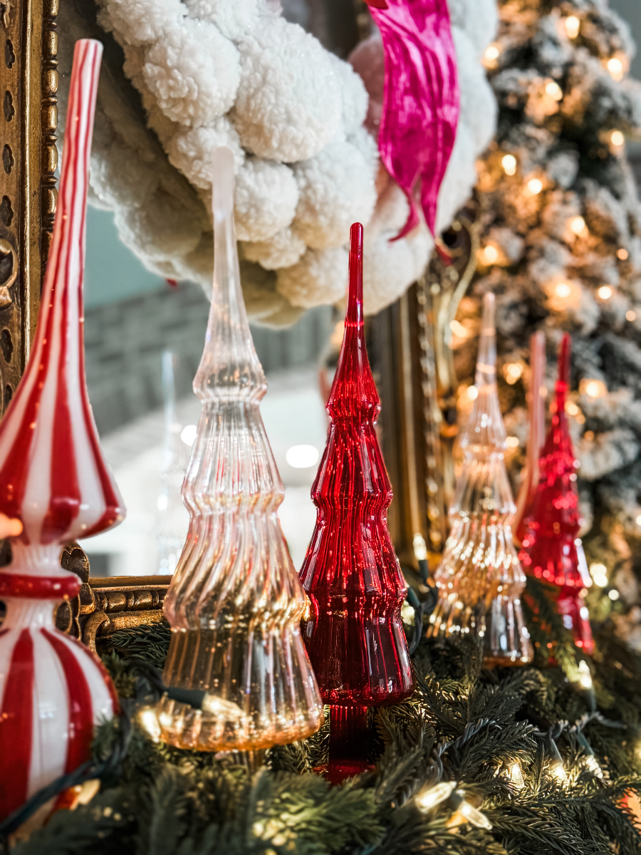 Christmas-mantel-3 By Brooke Riley Leave a Comment 10 Nov christmas mantel| how to decorate a christmas mantel| christmas mantel with glass trees| colroful Christmas mantel