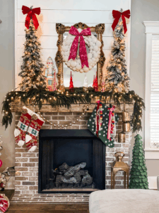 Christmas-mantel-5 By Brooke Riley Leave a Comment 10 Nov christmas mantel| how to decorate a christmas mantel| christmas mantel with glass trees| colroful Christmas mantel
