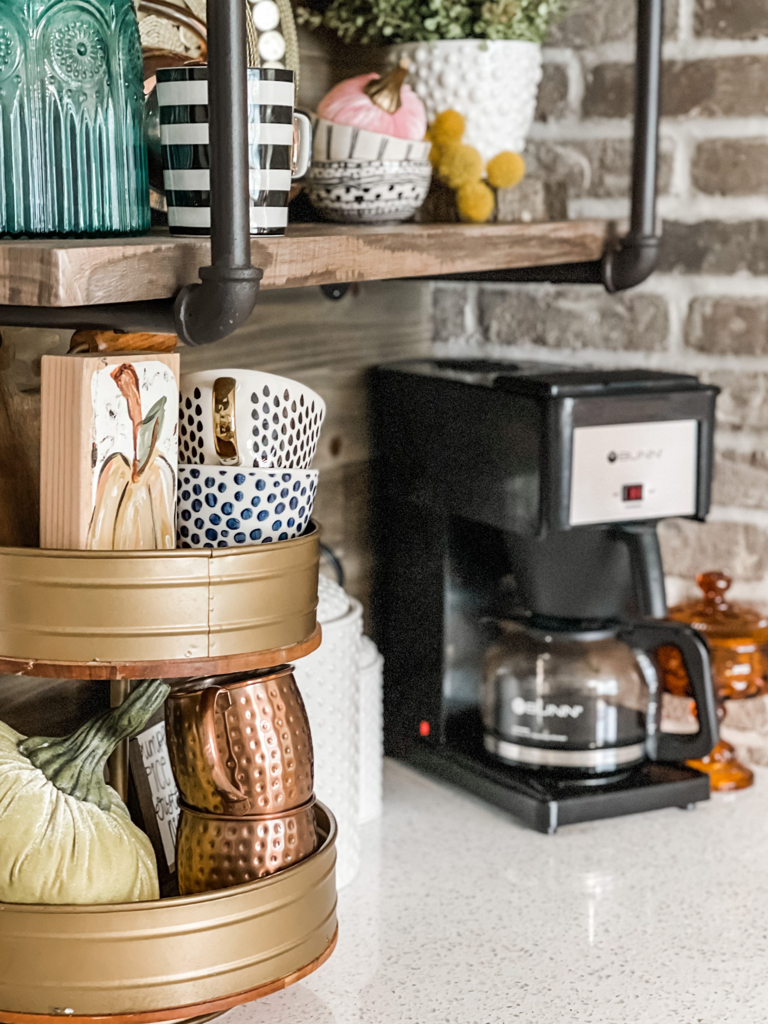 My absolute favorite area of my entire house to decorate is my coffee bar. It is such a fun space to decorate each season, and it houses what keeps me a nice person- COFFEE, of course!