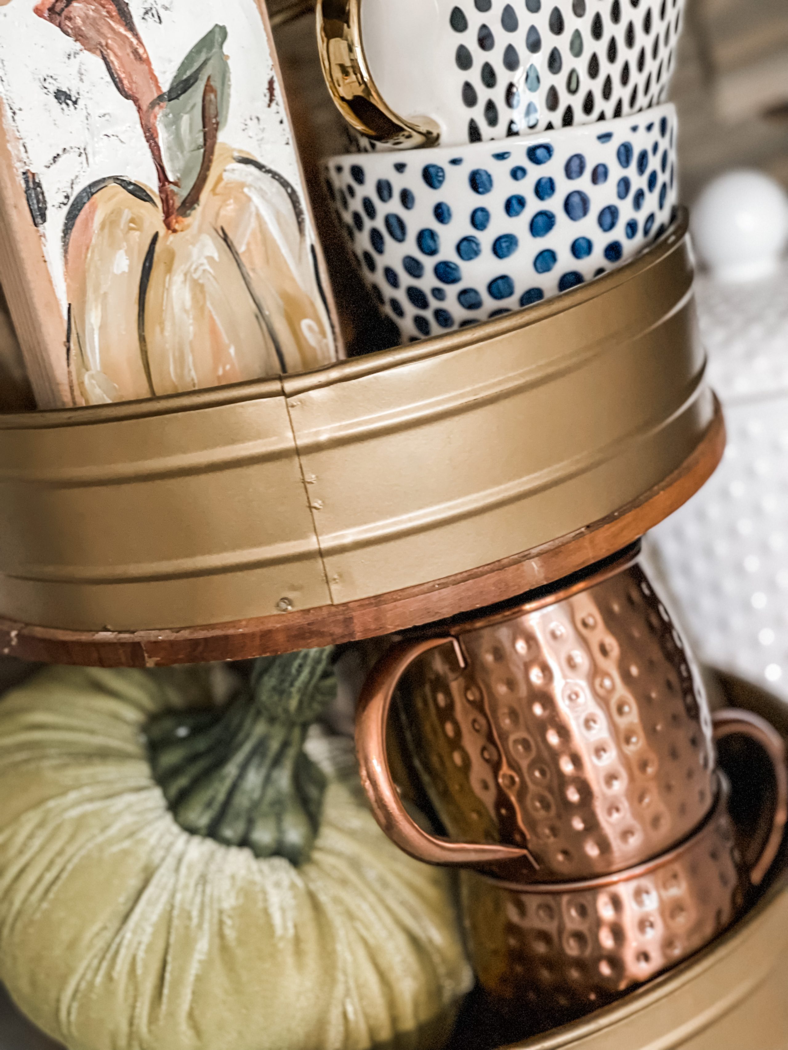 Today, I want to show you how I have my coffee bar styled for FALL this year! It never looks the same from year to year, although I love each style in its own unique way. I just start fresh each time with no recollection of the year before and let it move me LOL