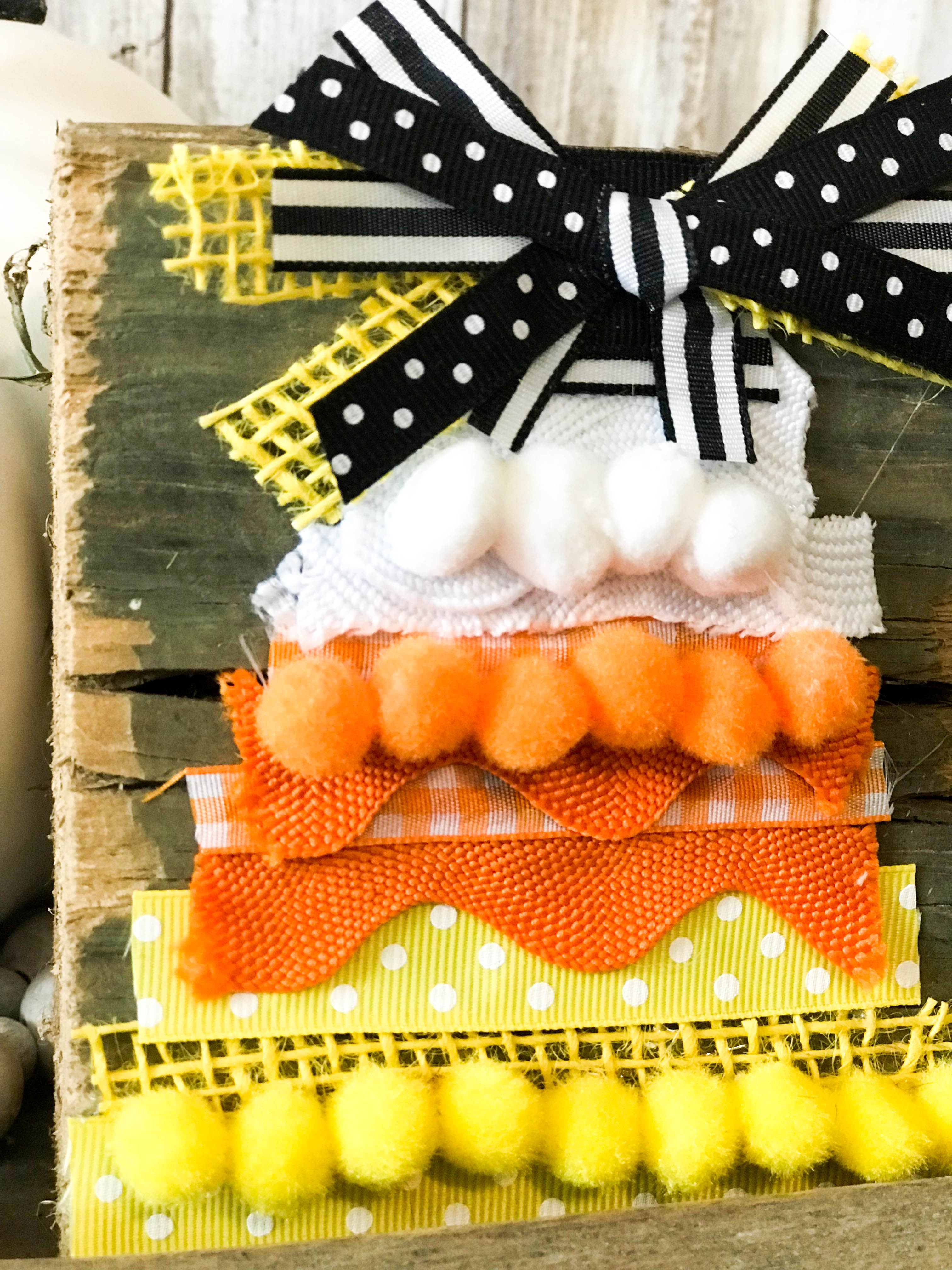 wood-block-candy-corn-2 By Brooke Riley Leave a Comment 17 Aug Make the cutest candy corn craft with an old wood block and lots of cute ribbon!